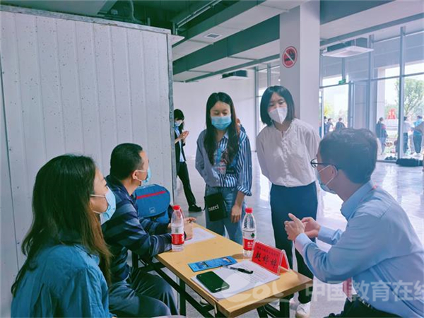 双选会现场人头攒动、气氛热烈,参会毕业生投递出简历的同时,积极与招聘人员交流互动。当天共有500余人次达成就业意向。