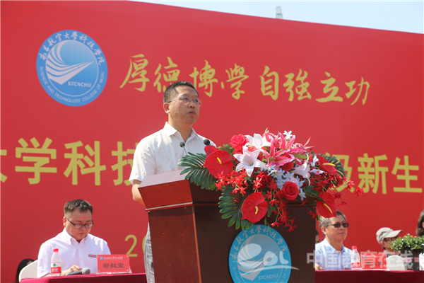 中国教育在线讯 云天收夏色、木叶动秋声。9月23日上午,昌航科院2021级新生开学典礼在田径场隆重举行。南昌航空大学党委书记罗嗣海,江西中航共青城实业有限公司董事长凌云,学校党委常委、副校长周世健,党政办主任吕昕阳、深圳市方益城市服务发展有限公司江西分公司总经理刘金水,学院全体院领导和各职能部门负责人,各学部主任、党总支书记,新生辅导员,教师代表以及2021年全体新生和专升本学生参加典礼。典礼由学院党委副书记、副院长舒叔宝主持。