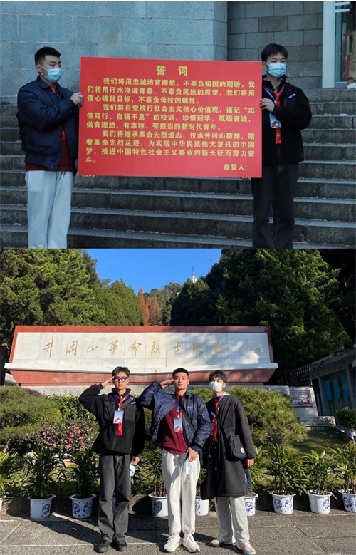 11月27日早上6点40,同学们用过早餐,去往井冈山烈士陵园缅怀英烈。向革命烈士敬献花圈,对革命烈士致以沉痛的哀悼以及崇高的敬意。革命先辈在这里,开启了中国革命走向胜利的光辉起点,也把热血洒在了这片红色的土地。在井冈山斗争中,牺牲的英烈近4.8万人。今天,“坚定执着追理想、实事求是闯新路、艰苦奋斗攻难关、依靠群众求胜利”,这跨越时空的井冈山精神,依然放射出新的时代光芒。