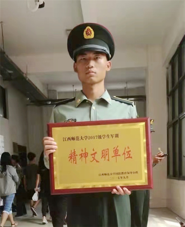 平旭一直有个梦想——参军入伍。2016年9月,他踏进美丽的江西师范大学青山湖校区,看到英姿飒爽的江西师范大学国旗护卫队,被深深地吸引了。后来,他如愿成为江西师范大学国旗护卫队的一员,一边努力学习,一边坚持锻炼。两年的国旗护卫队生活让他的从军梦越发强烈。“我一直在等待机会,一定要圆军人梦”,他说。
