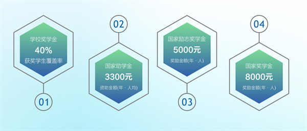为表彰激励优秀大学生勤奋学习、帮助家庭经济困难学生顺利完成学业,学校建立健全了资助政策体系,资助方式涵盖国家奖学金、国家励志奖学金、国家助学金、校级奖学金、学费减免、国家助学贷款、勤工助学,使家庭经济困难学生能够顺利入学。