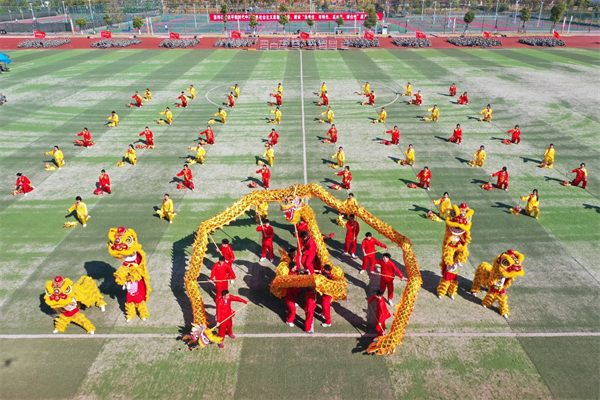 金秋十月,秋色如画,旌旗飘飘,战鼓擂动。暖场表演中,体育学院为全体师生带来龙狮表演《龙狮齐聚迎盛会》,龙腾狮舞,学生朝气蓬勃,活力十足。传媒学院带来集体朗诵《喜迎二十大,奋进新征程》,用青春的声音,传颂祖国的繁荣,一句“请党放心,强国有我”诉说着祖国的伟大富强,诉说着青年一代的奋发向上。音乐学院歌舞表演《没有共产党就没有新中国》感染全场,优美的舞姿,铿锵有力的歌声,传扬着祖国的伟大富强,传达着青年始终勇于奋进的姿态。