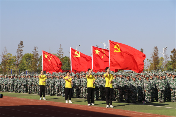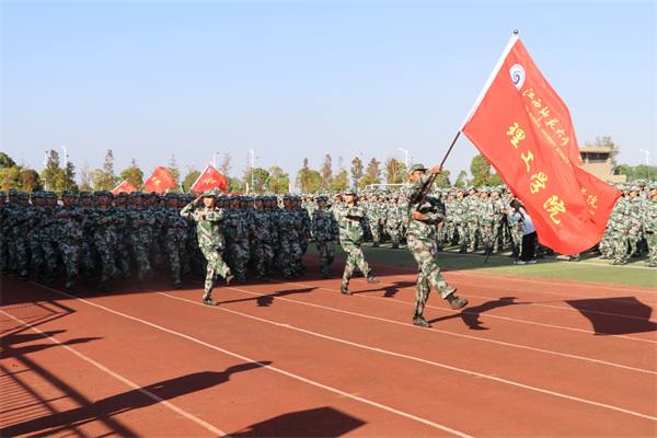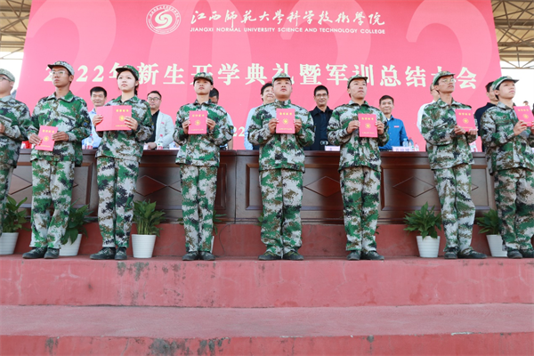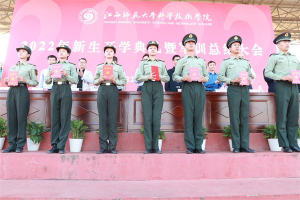 丹桂飘香沁心脾,迷彩戎装蓄势时。开学典礼在全体师生高唱国歌中拉开序幕。彭隆辉下达江西师范大学科学技术学院2022级新生军训汇演“开始”指令。