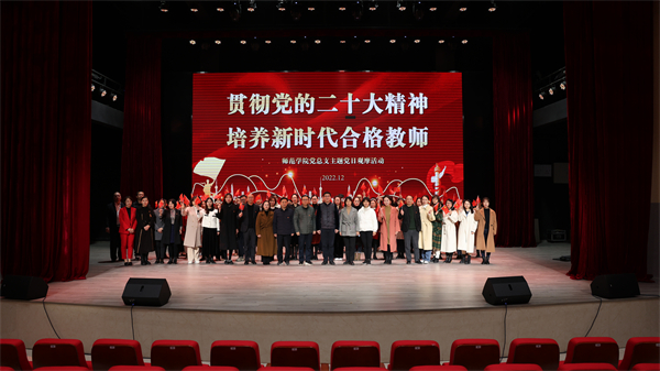 12月5日,宜春职业技术学院师范学院党总支在博达楼演艺厅举办了主题为“贯彻党的二十大精神 培养新时代合格教师”的党日观摩活动。本次活动邀请了该校党委书记任军,校党委副书记黄继斌,校党委委员、统战部部长邓伟蓉,校党委委员、组织部部长韩海荣,校党委委员、宣传部部长马天娥以及学校各基层党组织书记到场观看。活动由该校师范学院党总支书记邹晓英主持。
