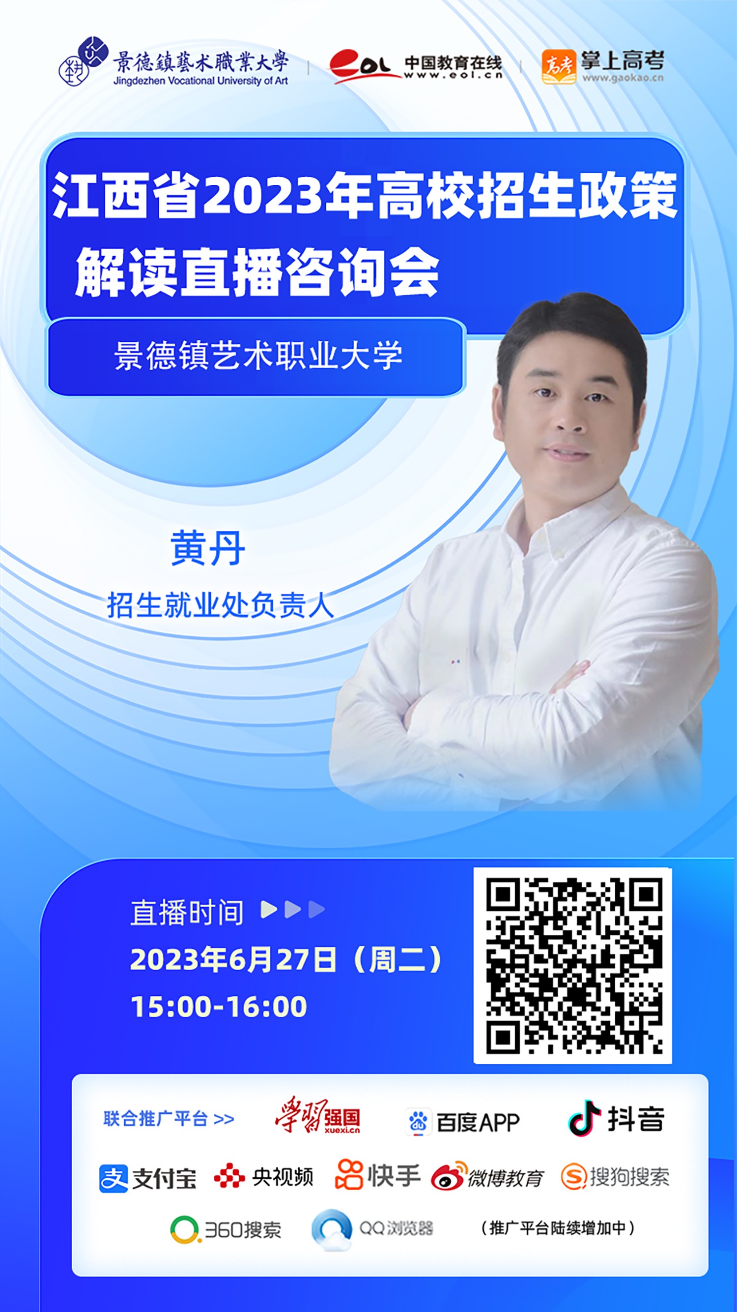 直播预告 |6月27日15:00,景德镇艺术职业大学2023年招生政策直播咨询会来了!
