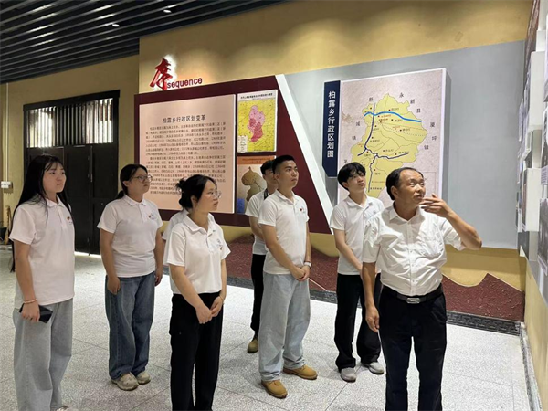 实践团队跟随江传亮书记的脚步了解柏露村红色教育区建设变化,队员们观看着路边一面又一面的红色故事、良好的风俗民情以及生态环境,感受柏露精神传承下的柏露乡村振兴丰收硕果。江传亮书记介绍柏露村以党建引领助推乡村振兴的具体实践,一“露”有你三项工程。一路上江书记谈起柏露村的发展,提到基层党建一定要下足“绣花”功夫。在推进乡村建设过程中,围绕中央彩票公益金项目、国家级红色名村、白石街区改造等重点项目,宣传引导上主动带头,积极动员,传承柏露文化精神,织好柏露新篇。