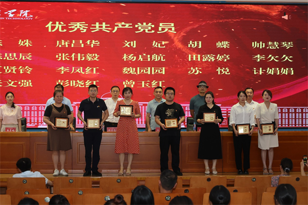 与会校领导分别向先进基层党组织、优秀党务工作者、优秀共产党员和优秀“主题党日”活动颁发荣誉证书并合影留念。