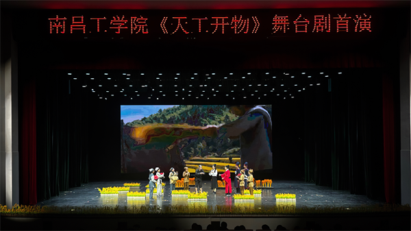 12月19日下午,《天工开物》舞台剧首演在南昌工学院天工剧院举行,校长康灿华、副校长朱盛萍,董事会助理王笑风和1000余名师生共同观看。