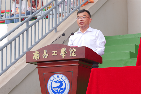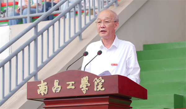 校长康灿华以《胸怀天下坚定目标 脚踏实地行稳致远》为题发表讲话。他首先代表学校全体师生员工,向9000余名新同学表示热烈欢迎,并向家长、教师及军训教官致以诚挚感谢。康灿华回顾学校办学历程时指出,南昌工学院始终坚持为党育人、为国育才的初心,致力于培养工程实践与创新能力强、具有工匠精神的高素质应用型人才。学校践行“育人为本、追求卓越”办学理念,坚持“学科引领、本科立校、文化兴校、人才强校、特色发展”的办学思路,坚定不移朝着“有特色高水平应用型大学”目标奋勇迈进。他向新生提出四点殷切期望:一是要胸怀家国,笃定理想信念;二是要主动调整,快速转换身份;三是要锚定目标,规划发展路径;四是要脚踏实地,用好学习资源。他勉励同学们弘扬“忠信笃行、自强不息”的校训精神,在大学期间锤炼本领、完善人格、勇担时代使命。