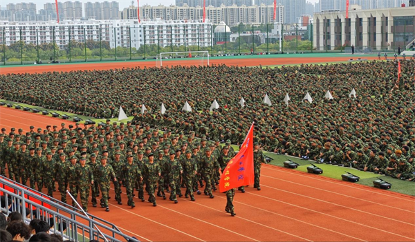 上午8时整,庄严的国歌声响彻云霄,五星红旗冉冉升起,开学典礼正式拉开帷幕。在军训会操环节,2025级新生以挺拔的英姿、稳健的步伐和响亮的口号,精神抖擞地走过主席台接受检阅。他们眼中闪烁着青春的光芒,心中怀揣着对未来的憧憬,展现出南工学子积极向上、昂扬奋进的精神风貌。