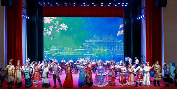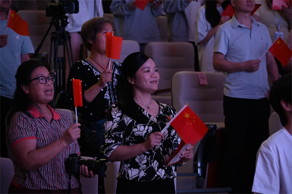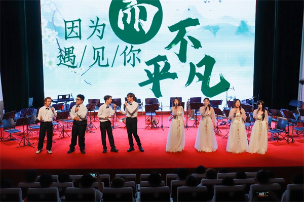 《天路》《云宫迅音》《上春山》等曲目或以创新演绎展现科技与艺术的碰撞,或用纯净和声传递青春朝气,深情赞颂了伟大祖国发展成就,满含着对祖国的祝福与自豪;《衣冠里的中国》更是将民族服饰文化与音乐艺术完美融合,身着各民族特色服饰的模特伴随着悠扬旋律依次登台,或典雅庄重或灵动绚丽,直观展现各民族服饰的独特魅力,生动诠释了“中华民族一家亲”的深厚内涵,引发全场师生强烈共鸣;《记忆童年》用音符串联江西服装学院34载办学历程,承载江服师生共同记忆,将爱校荣校之情与家国情怀紧密相连。音乐会在《没有共产党就没有新中国》中落下帷幕,全场师生齐声合唱,让红色信仰与爱国热忱在旋律中久久回荡。