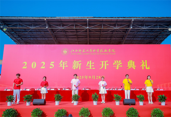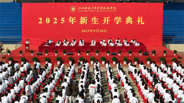 在全场师生的热切注视下,姚弋霞宣布:“江西师范大学科学技术学院2025年新生开学典礼开幕!”