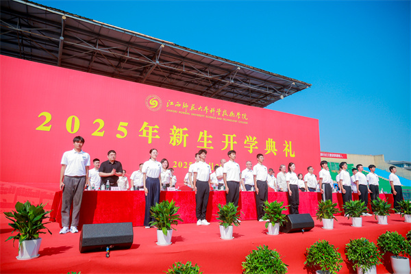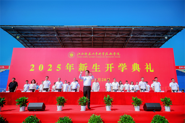 江西师范大学党委常委、副校长姚弋霞,江西中航共青城实业有限公司副总经理段建新,校友代表、南方医科大学教师王英俊博士,江西师范大学科学技术学院党委书记黄小兵等党政班子成员出席典礼。江西师范大学科学技术学院各单位、各部门党政主要负责人,教师代表、校友代表、老生代表与全体新生等5000余人齐聚现场,共同见证这一重要时刻。
