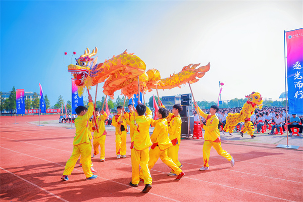 典礼开始前,精彩的暖场表演点燃了现场气氛。体育学院带来的龙狮表演《龙狮焕彩 青春绽放》气势恢宏,金龙翻腾、雄狮跃动,展现出学子的蓬勃朝气;传媒学院的集体朗诵《青春担当 强国有我》铿锵有力,字里行间满是青年学子的责任与担当,激励着新生们勇担时代使命;音乐学院演绎的歌舞《江山》深情动人,优美的旋律与真挚的歌声,传递出对祖国的热爱与美好祝福。现场掌声此起彼伏,师生互动热烈,处处洋溢着青春的活力。
