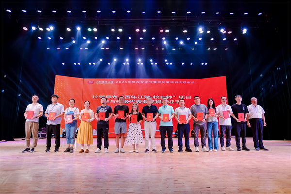 阙善栋为“百年江财·校友林”项目参与班级代表颁发捐赠证书,并感谢各班级对母校的微捐赠。“校友林”不仅是校友与母校共同成长的见证,更是江财精神代代相传的象征。