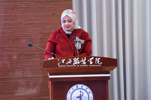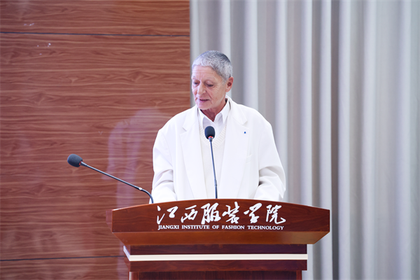 外国嘉宾代表、法国巴黎国际剪裁学院院长Christine Walter Bonini致辞,她表示,非常荣幸能够来到江西服装学院,与师生们共同参与2025国际时尚艺术节这一盛会,对本次外语风尚大赛充满期待与欣喜,也期待通过赛事见证中外青年的跨文化交流风采。