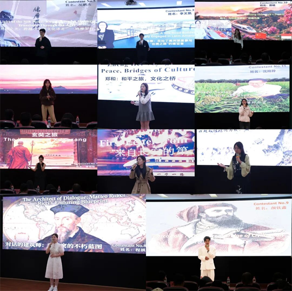 比赛中,11名参赛选手以英语为表达载体,围绕“一带一路”文化共建主题展开精彩演讲。他们或追溯历史,讲述张骞出使西域开辟丝路、郑和七下西洋联通四海的壮举;或聚焦文明使者,分享鸠摩罗什译经传法、利玛窦西学东渐、马可・波罗游历东方等跨越地域的文明交流佳话,生动诠释了“一带一路”倡议中开放包容、互联互通的历史渊源与时代内涵。演讲间隙,中场舞蹈表演与英文歌曲演唱精彩纷呈,赢得现场观众阵阵掌声;互动环节中,观众积极参与、踊跃交流,在轻松愉悦的氛围中深化了对“一带一路”文化交流意义的理解,现场气氛热烈而融洽。