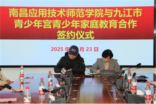 10月23日,南昌应用技术师范学院与九江市少年宫开展家庭教育合作。九江市青少年宫党支部书记、主任霍彪与我校副校长郑行忠出席签约及揭牌仪式。九江市青少年宫支委成员、教职工代表,以及校团委负责人、教育学院党政班子成员、家庭教育研究院院长、教师和学生代表等参加活动。