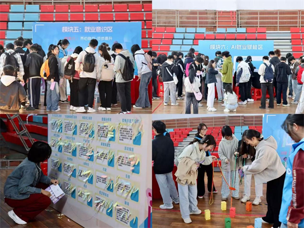 学生们穿梭于八大闯关游戏之间。在“生涯初体验”中探索自我,于“岗位指南针”前了解行业;通过“简历拼贴墙”学习实用技能,在“齐心协力”里感受团队力量。这场融趣味性与知识性于一体的活动,为学子们的职业生涯规划奠定了坚实基础。