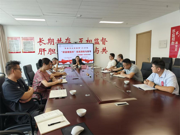 继9月24日开展集中赋能培训、5位二级学院党委(党总支)书记面向各自学院完成新一轮“书记讲道理”后,以“问题”为镜,校党委书记胡晓娥近日面向“书记讲道理”专训班全体学员开展两轮“讲道理技术”实战演练与针对性督导,全面提升自主成长力,达成自主解决困惑,带动“书记讲道理”专训班整体能量提升。这也是“党委书记讲道理”第三十五讲,副校长郑行忠到场观摩并参与演练。