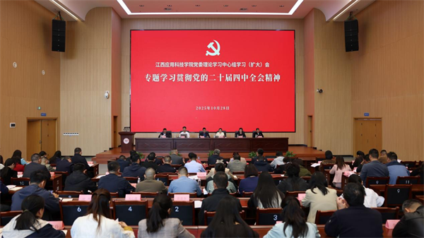 10月28日上午,江西应用科技学院在三元大厦二楼学术报告厅召开党委理论学习中心组(扩大)会,专题学习党的二十届四中全会精神。校党委书记贺一松主持会议并讲话。在家校领导、全校副处级干部参加学习会。