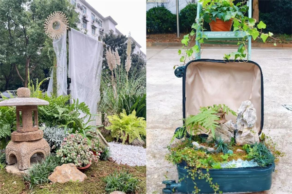 “不同于传统的设计作业,这次活动要求我们从‘纸上谈兵’转向‘实地建造’,不仅要考虑植物的生长习性、空间的功能布局,还要亲自动手处理材料、搭建结构,整个过程充满挑战但收获满满。”参与作品《陶语森境,疗愈绿洲》设计的A2362班学生刘萍瑶表示,通过此次实践,她深刻体会到“微空间”背后的大价值——看似小巧的花园,实则是城市生态系统的“微小细胞”,能够为改善人居环境、提升生活品质发挥重要作用。