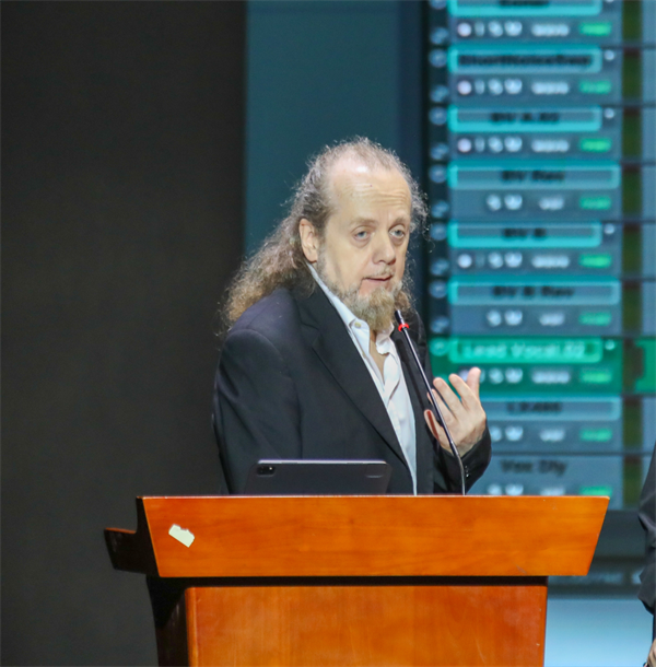 11月2日上午,三位专家的主旨报告继续推动议题深入交流。上海师范大学申林以“AI赋能音乐创新新场域”为题,探讨人工智能在音乐创作中的新可能;武汉音乐学院冯坚在“多模态交互下的音乐创作”的分享中,展示了多感官融合的音乐表达方式;中国传媒大学王铉则系统梳理了“中国应用类电子音乐创作范式变迁”,揭示了技术演进对音乐形态的影响。