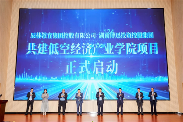 随后,辰林教育集团与湖南博迅集团双方领导共同启动“共建低空经济产业学院”战略合作项目。启动仪式的成功举行,标志着双方合作迈入实质性阶段,也标志着低空经济产业学院建设正式扬帆起航。