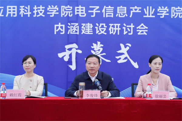 10月28日,江西应用科技学院电子信息产业学院(龙南)内涵建设研讨会在龙南顺利召开。龙南市委常委、宣传部部长李俊锋,市政府副市长徐丽芸,市教体局局长赖红霞,学校执行理事长王立,副校长兼电子信息产业学院(龙南)院长谢远健等出席。会议由校长助理、教务处处长、电子信息产业学院(龙南)副院长董春燕主持。学校电子信息产业学院(龙南)师生代表与合作企业负责人共同参会。