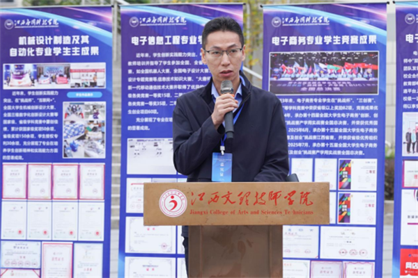 龙南市委常委、宣传部部长李俊锋在开幕式讲话中强调,产业学院要坚持以“平台共建、标准共定、人才共育、责任共担”为核心方向,通过创新成果转化、资源共享、协同保障与内涵建设,持续深化产教融合,切实推动校兴、企强、学成才的三赢目标。