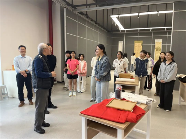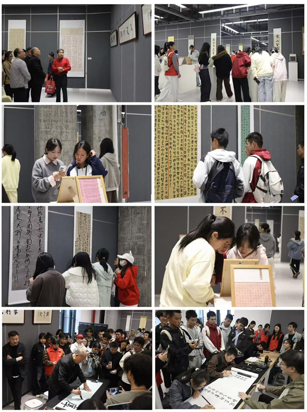 巡回展前夕校长陶也青莅临展馆,陶校长首先肯定了学校学生练习书法的刻苦,并对学校学生作品现场逐一指导并提出了改进建议,向同学们科普了近年出现的几种陶瓷篆刻,对技艺的要求更加高超,鼓励同学们努力练习书法技艺,在传承中创新进步。