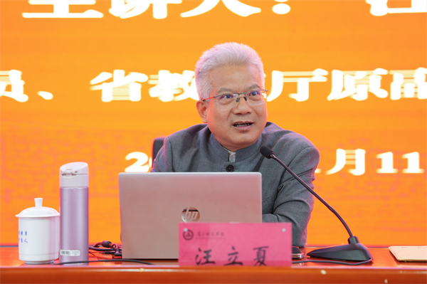 在“悟享人生”部分,汪立夏提出大学生成长的“五学”“四静”“三怀”准则。“五学”即人学、心学、文学、科学、经学,倡导全面培育完整人格;“四静”强调脑清、身勤、心静、手脚净,指引学子保持理性清醒、踏实务实、心态平和、廉洁自律;“三怀”则呼吁青年要有情怀、有胸怀、会释怀,在责任担当中热爱生活,在包容多元中拓展格局,在坦然得失中轻装前行。