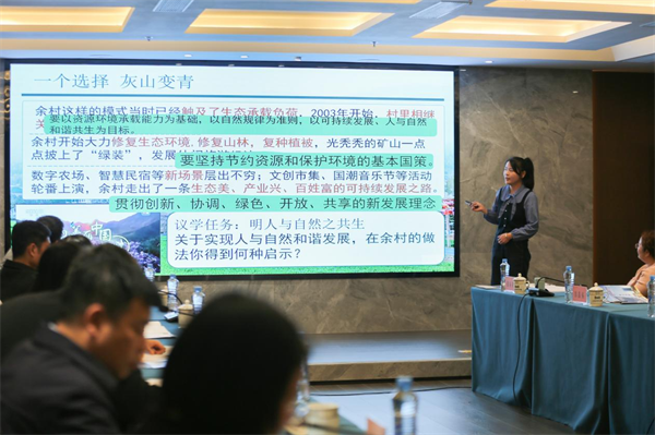 在教学展示环节,南昌市红谷滩区云溪学校冷若兰、江西工业贸易职业技术学院王晓歌、南昌航空大学王希金围绕“党的二十届四中全会精神融入思政课教学”作现场展示。三位教师分别以《共筑生命家园》《如何理解坚持人民至上》《以党的二十届四中全会精神为引领 推动高质量发展》为题,进行了各有侧重、层层递进的课堂呈现,充分展现了不同学段思政课在教学目标确立、内容深度推进和方法策略运用上的有效衔接与梯度提升,为现场观摩教师提供了具有示范意义的教学范例。