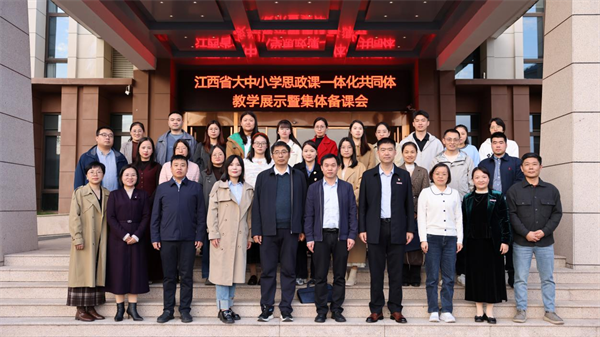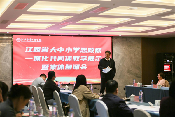 在全省深入学习贯彻党的二十届四中全会精神之际,为进一步推进全省大中小学思政课一体化建设,11月13日,江西省大中小学思政课一体化共同体教学展示暨集体备课会(第四期)在江西应用科技学院举行。江西省委教育工委、省教育厅社政处干部罗小松,校党委书记贺一松,江西工业贸易职业技术学院副院长宋小兵,教育部高校思政课教指委委员、中央马克思主义理论工程专家、天津师范大学马克思主义学院教授李朝阳,大理大学马克思主义学院教授陈旭,南昌航空大学马克思主义学院副院长常青,南昌市教育局干部邓怀丽等出席活动。