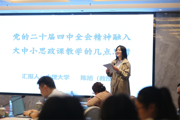 在专题辅导点评环节,李朝阳和陈旭教授对三位教师的课堂展示给予了充分肯定。两位专家一致认为,本次展示课主题聚焦、设计用心,能够紧扣党的二十届四中全会精神,做到观点鲜明、逻辑清晰,体现出不同学校在推进思政课改革方面的积极探索,为大中小学一体化建设提供了有益示范。在充分肯定的基础上,专家也从更高站位对后续优化提出了方向性的建议。李朝阳教授指出,要进一步增强课堂的“针对性”和“吸引力”,通过科学设计“问题链”直面学生思想困惑,以更具生成力的方式提升课堂参与度,同时要强化“能力目标”,引导学生学会运用马克思主义立场观点方法分析问题,使思政课真正“入脑入心”。陈旭教授从教学实施角度提出,后续要在案例选取、逻辑衔接、理论深度和表达方式上持续打磨,特别是要把握价值引领与知识传授的平衡,优化不同学段之间的梯度设计,借助本土案例、微议题等方式增强课堂的说服力与思辨性;同时要进一步加强大中小学师资协同,推动一体化建设走深走实。