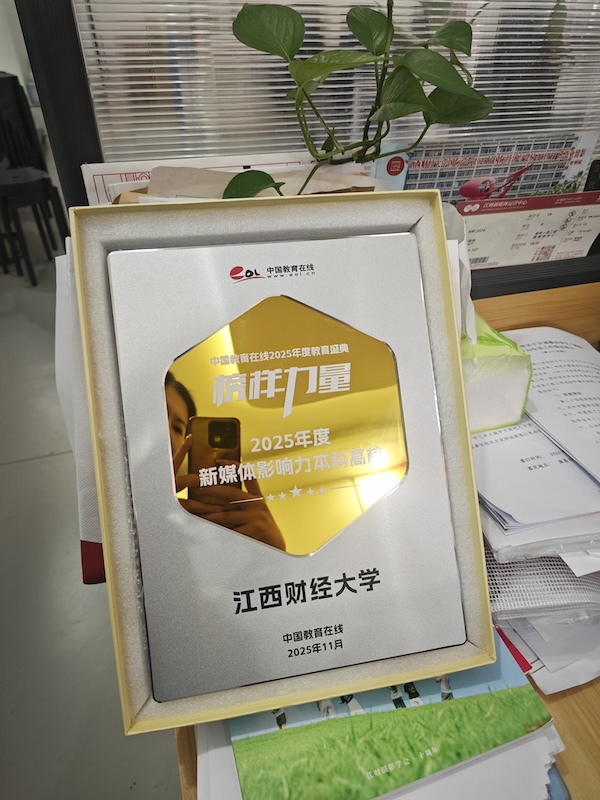 近日,中国教育在线“榜样力量·2025年度教育盛典”优秀案例名单公布。江西财经大学凭借在新媒体领域的卓越成就与深远影响力,荣获“2025年度新媒体影响力本科高校”。