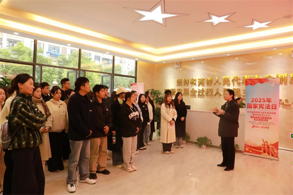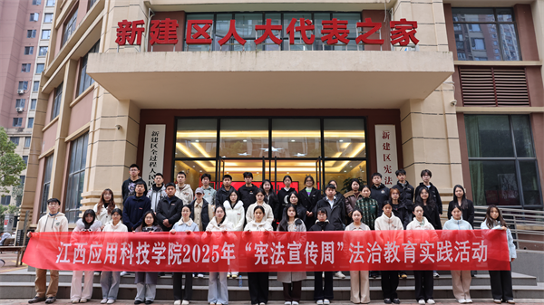 “宪法如何在生活中守护我们?”“法治进程里有哪些我们身边的故事?”12月4日,江西应用科技学院师生代表带着思考与期待,走进学校“大思政课”实践教学基地—新建区人大代表之家(宪法教育馆),开启了一场生动的“宪法宣传周”法治研学实践。