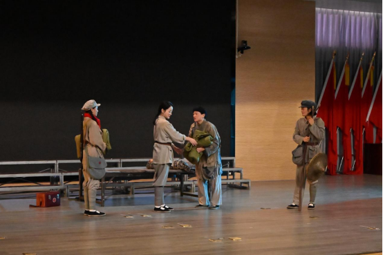 演出在话剧《半条棉被》中开场,裁开的是布料,连接的是民心,布料间传递出长征路上红军战士与百姓之间军爱民、民拥军的鱼水深情。在话剧《可爱的中国》中,方志敏以生命为笔、信仰为墨,深情阐述“以身殉志,不亦伟乎”的壮烈情怀与崇高境界。伴随着四位女战士在战火中宁死不屈的坚守誓言,话剧《芙蓉不落红》中的忠贞风骨感动现场。一曲《映山红》吟唱出对黎明的深切期盼,歌曲《旗帜更鲜艳》则奏响继往开来的时代强音,歌声婉转而激越,悠扬余韵感人至深。压轴剧目《马背上的摇篮》中战士们穿越封锁,引领观众见证了他们用生命守护革命后代的承诺。