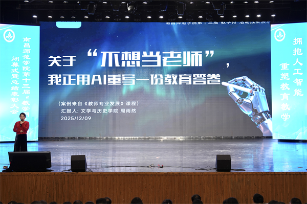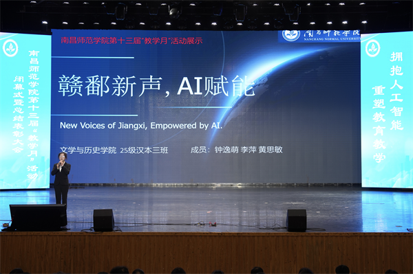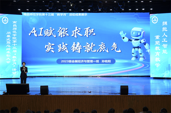 11月4日至12月9日,南昌师范学院举办第十三届“教学月”活动,以“拥抱人工智能 重塑教育教学”为主题,开展系列特色活动并取得丰硕成果。12月9日,该校举办“教学月”成果展示活动。活动精选代表性成果进行集中展示,重点呈现人工智能赋能智慧课程、教学创新、智能场景应用等领域的实践探索,为深化教育教学改革提供有效路径。活动由青风学堂风采学子徐诗婷主持。