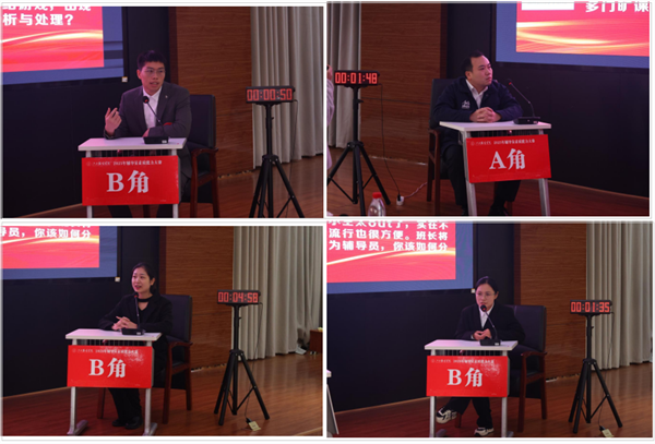 12月4日上午,培训班开展辅导员素质能力大赛案例研讨环节,主要考察辅导员综合运用理论分析问题、研判问题、解决问题、应急处突等能力。选手在赛前抽取AB角签位,赛前10分钟分别抽取1道案例。比赛以“我提问,你回答”的方式开展,6组选手既是对手、又是辩手,围绕“就业创业”“理想信念”“党员发展”“网络舆情”“心理危机”“宗教信仰”等主题,共同辨析原因、研讨对策、总结规律。在案例研讨中选手们以饱满的精神状态和流畅的语言表达,深度剖析问题本质,积极探求解决思路,提出实施办法,彰显育人理念,充分展示了学校辅导员扎实的职业功底。