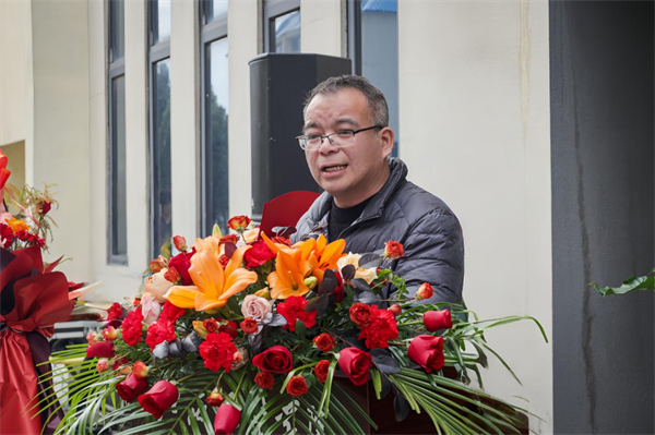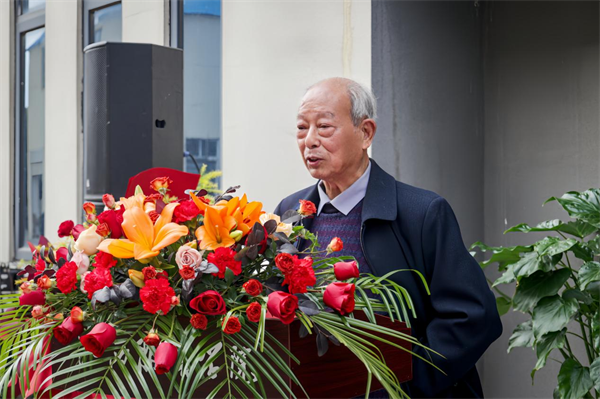 江西服装学院原副校长吴仁赣上台致辞并宣布展览开幕。他回顾了与鲍明勇老师的交往点滴,肯定其二十余年来在教学与艺术领域的坚守与深耕,赞扬其作品兼具传统底蕴与时代气息,是美育育人的生动教材。