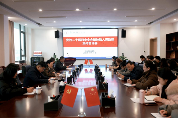 为深入学习贯彻党的二十届四中全会精神,扎实推进全会精神融入思想政治理论课教学,提升思政课教学质量和育人实效,12月24日,南昌应用技术师范学院马克思主义学院开展党的二十届四中全会精神融入思政课集体备课会。校党委书记、督导专员胡晓娥出席会议并讲话,学院领导班子成员及部分教师代表参会。备课会由学院党总支书记张欣康主持。