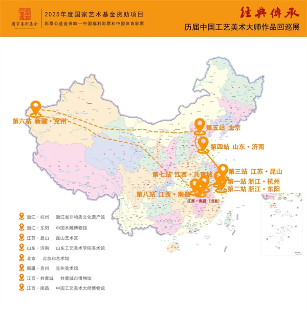 据悉,“经典传承——历届中国工艺美术大师作品回巡展”巡展自四月于浙江杭州启程,历经浙江东阳、江苏昆山、泉城济南、首都北京、新疆克州、江西共青城,所至之处,观者如云,反响如潮,为各地观众奉上一场场匠心凝结的视觉盛宴。巡展全程获人民网、新华社、中国网、中央广播电视总台国际在线、中国青年报、学习强国等以及省市级重点媒体累计报道百余篇,影响深远,回声激荡。新年前夕,巡展荣归故里并永久陈展,为这场跨越山河的工艺美术盛宴,画下了圆满句点。(文/沈东雪)
