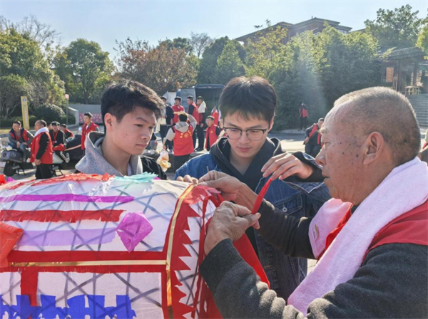 在展演现场,南工师生们在传承人的指导下,学习传统连接技法,协助完成灯体组装,亲身感受从零件到成品的工艺转化过程。从一根根竹骨到一盏盏完整的鱼灯,同学们在学习实践中,直观感受到传统技艺的结构逻辑与匠心所在。