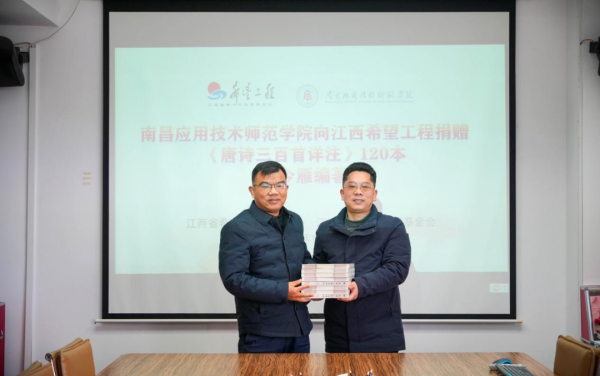 善举启新岁,书香润心田。1月5日上午,南昌应用技术师范学院向江西希望工程捐赠120册《唐诗三百首详注》,以书香寄托深情,以文化助力成长。南昌应用技术师范学院党委委员、副校长郑行忠,校团委书记毛宇,江西省青少年发展基金会理事长毛鸿山、副秘书长周彦廷等共同出席捐赠仪式。