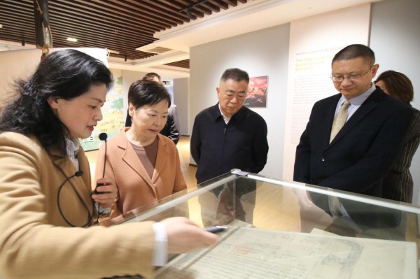 讲座前,林郑月娥参观了校史馆、中国税收票证博物馆等,深入了解了学校发展历史和现状。