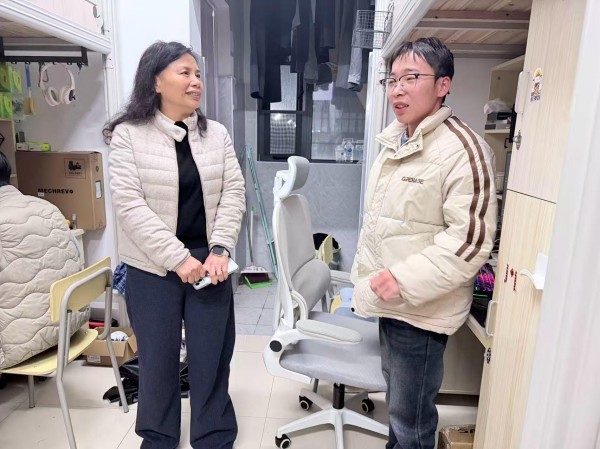 走访中,李冰颖与同学们亲切交谈,细致询问新学期规划与生活适应情况,鼓励大家迅速从假期模式切换到学习状态,珍惜大学时光,在刻苦钻研专业知识的同时,积极参与校园文化活动,全面提升综合素质,努力成长为“有理想、敢担当、能吃苦、肯奋斗”的新时代好青年。