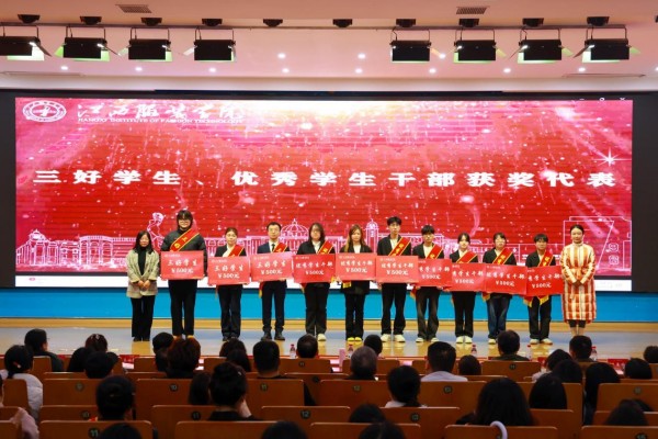 国家奖学金获得者代表杨园园、润华奖学金获得者代表徐佳丽、优秀班长代表李振东先后发言。他们结合自身成长经历,从不同角度分享了匠心筑梦、学业争先、服务师生的心路历程,真挚的讲述引发了在场师生的强烈共鸣,充分展现了江服学子砥砺奋进的青春风采。