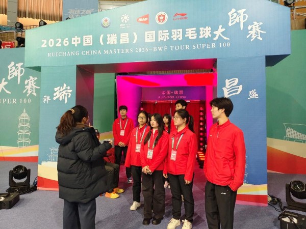 外国语学院充分发挥学科优势,将学雷锋活动延伸至国际化窗口。3月10日至15日,在2026年中国(瑞昌)国际羽毛球大师赛现场,40余名外院志愿者成了赛场上一抹亮丽的“志愿红”。他们凭借过硬的语言功底和严谨的服务态度,穿梭于翻译、接待、赛场保障等多个岗位。学子们用精准的翻译沟通世界,用热情的服务诠释“奉献、友爱、互助、进步”的志愿精神,向世界展示了中国大学生的青春动能与责任担当。