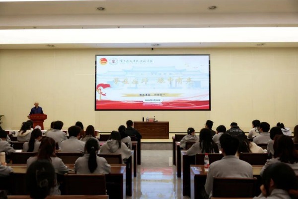 讲座中,陶也青围绕“学在应师,眼中有光”核心内涵,结合青年成长规律进行层层深入阐释。他指出,青年成长成才,既要扎实积累书本知识,更要读懂社会、学会做人、涵养品德。“眼中有光”是应师学子追求卓越的精神底色,更是青年骨干坚定信仰、服务社会、担当使命的根本底气。作为青年骨干,必须把个人理想追求融入时代发展大局,在精进专业素养的同时,锤炼高尚品格、强化责任担当,真正做到眼中有光、心中有责、脚下有路,为服务国家、奉献社会积蓄坚实力量。